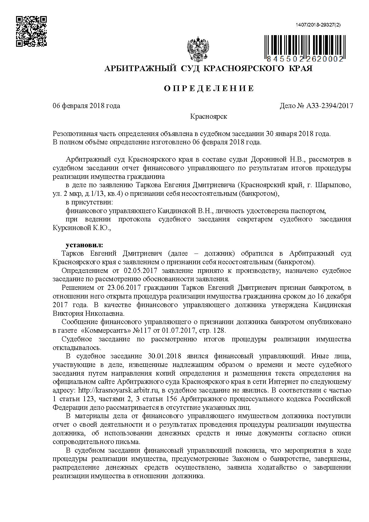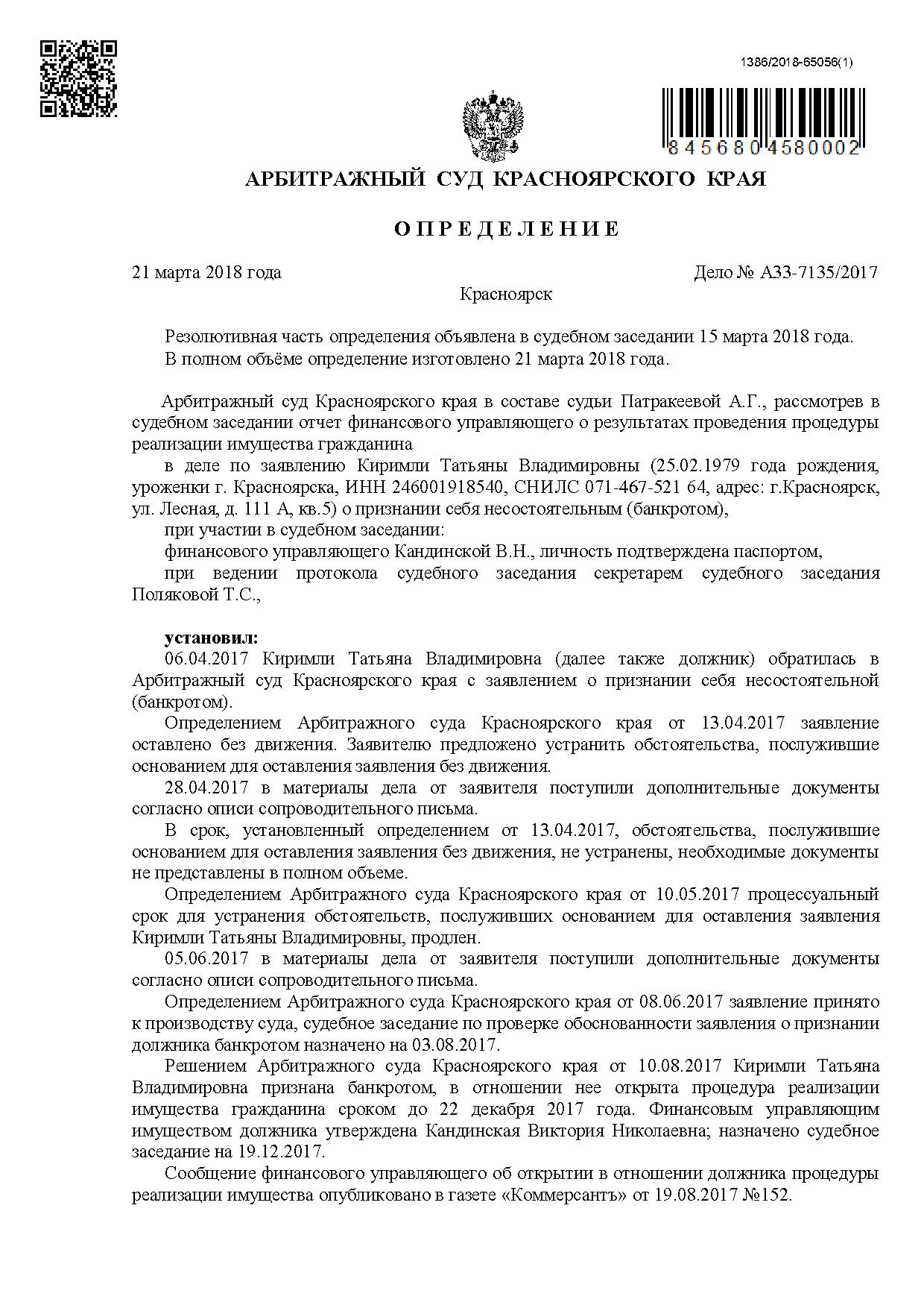 4. Через 6 месяцев получаем судебное решение о полном списании всех долгов.