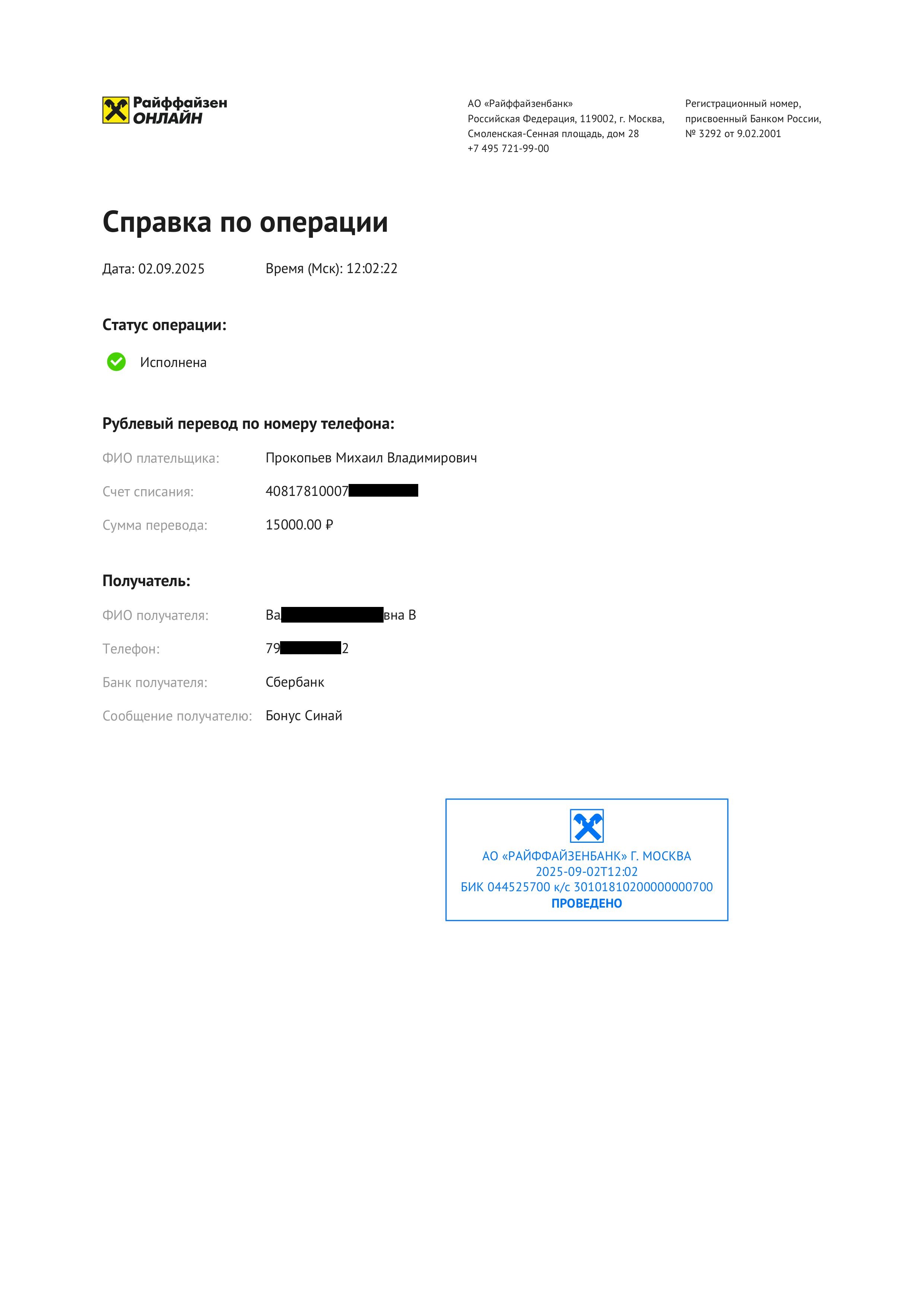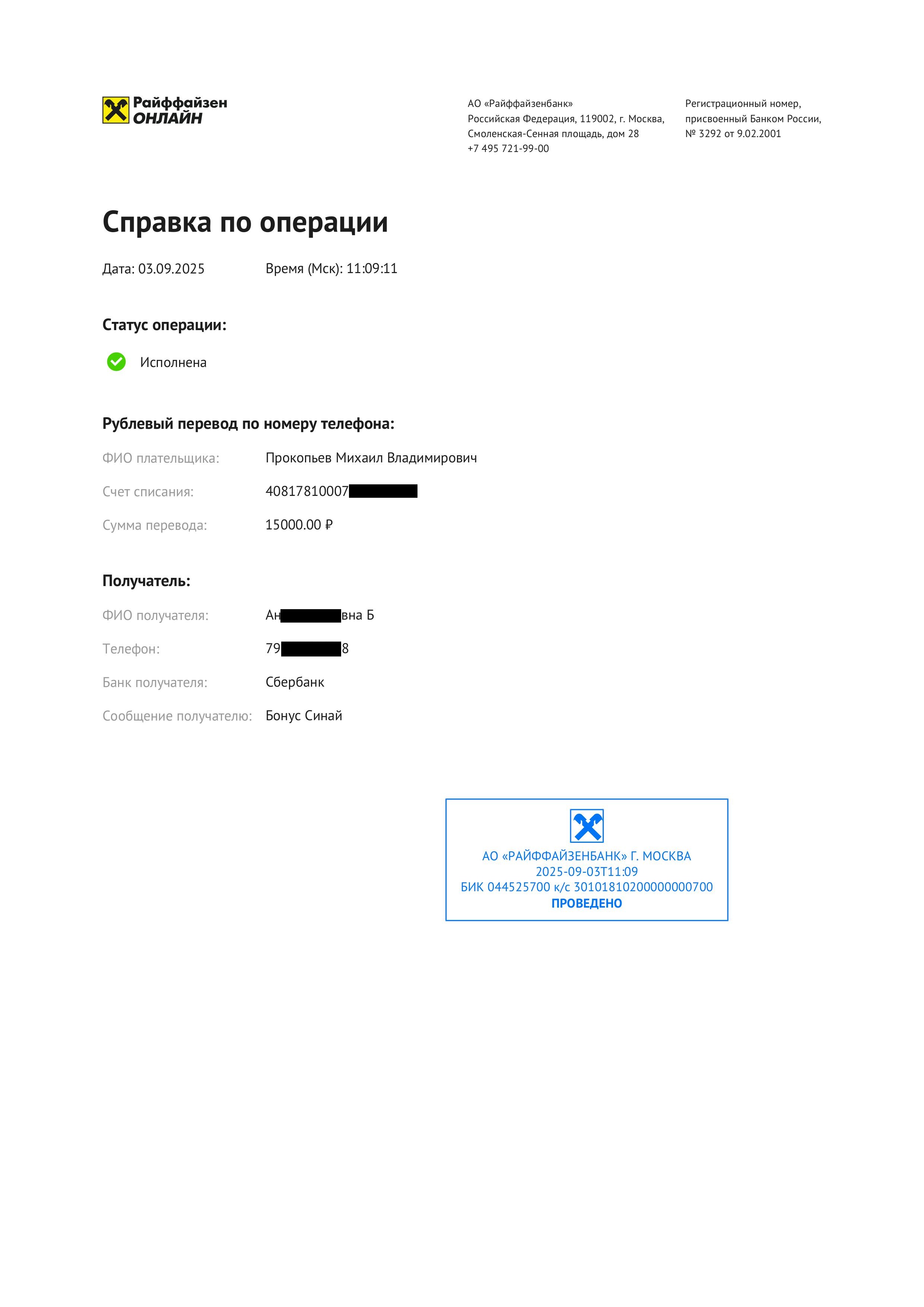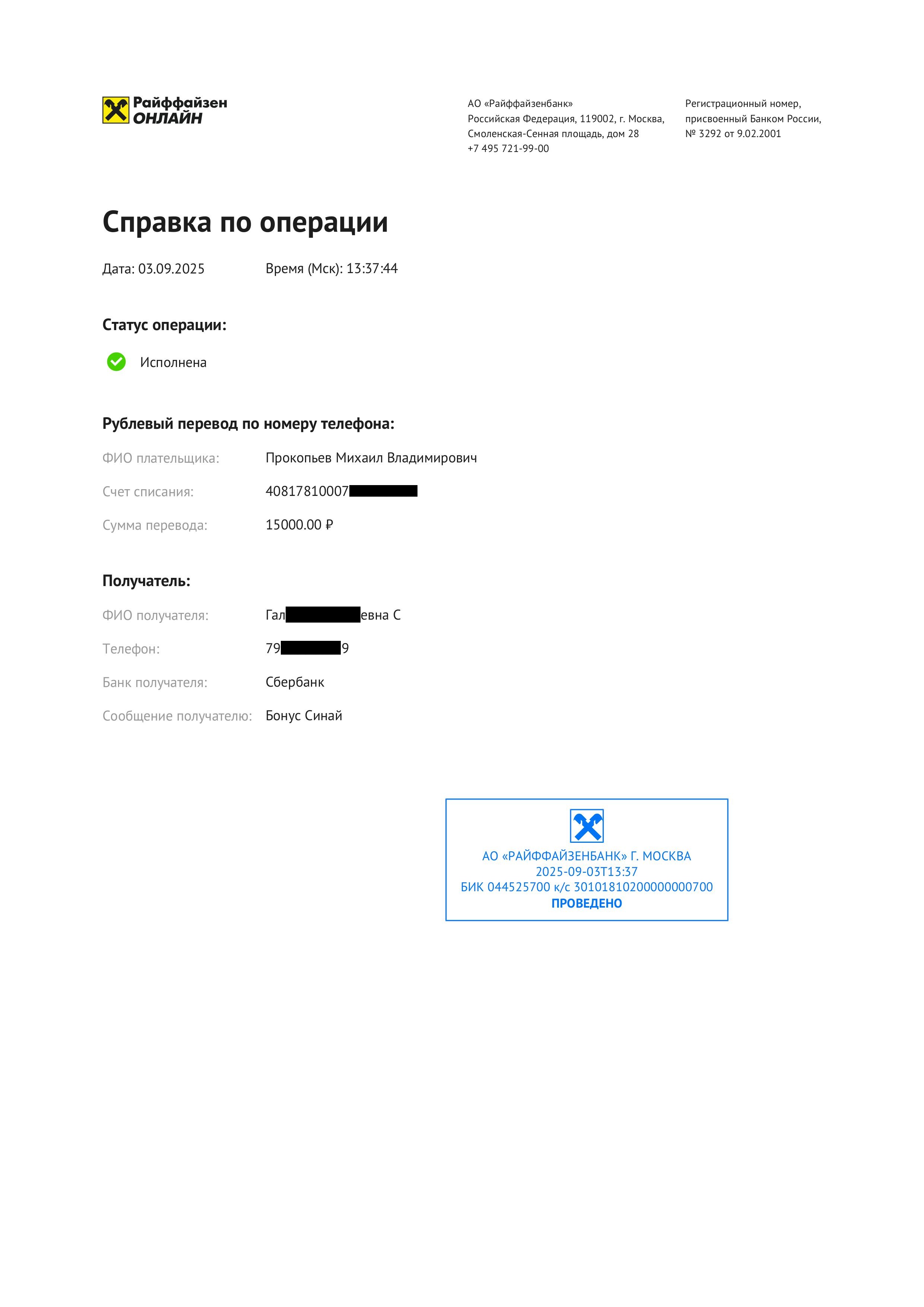 Ниже квитанции реальных переводов бонуса
